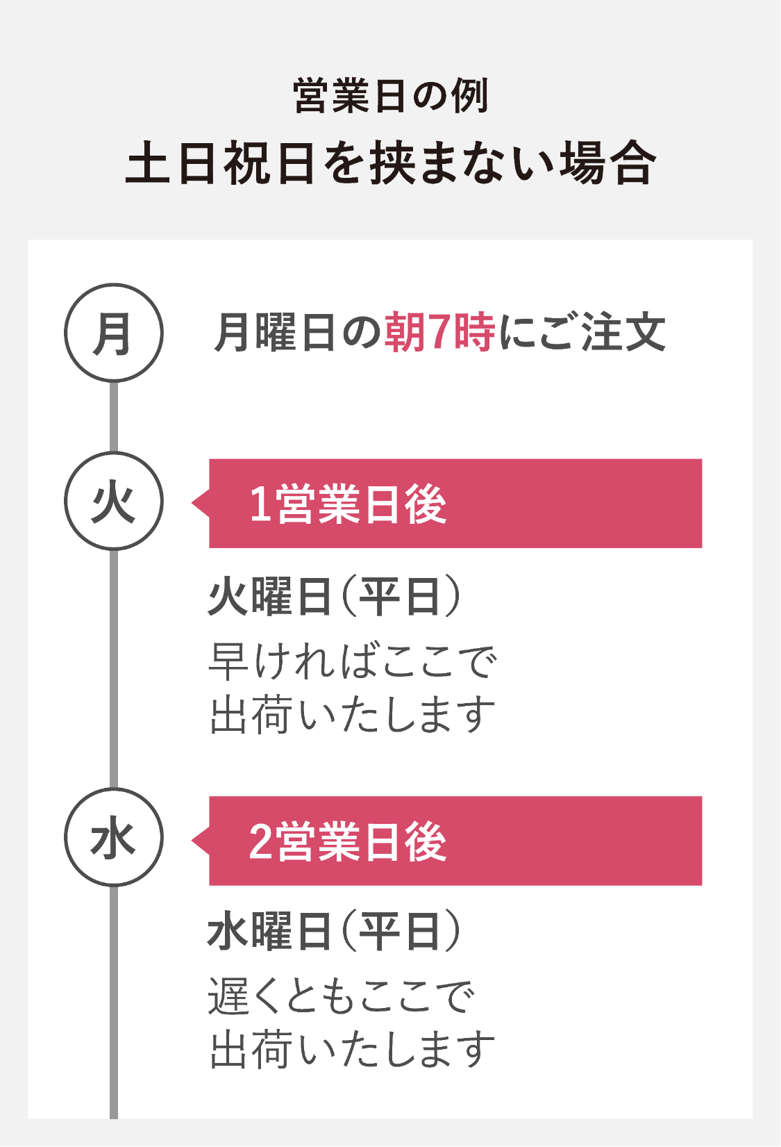 上記プラスして2営業日の出荷となります。